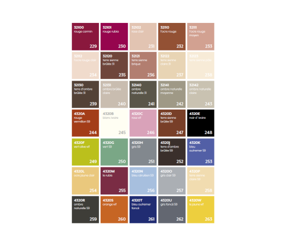 63 couleurs le Corbusier disponibles sur simple demande.