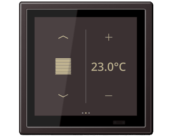 - Commande de consommateurs et visualisation des états de l’installation et informations, par ex. allumer et varier la lumière, piloter les lambrequins, valeurs de température et de consommation, etc.