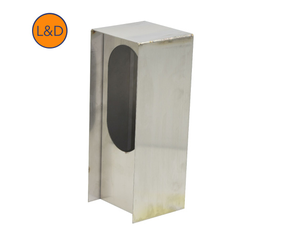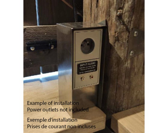 Potelet inox brossé permettant l'installation d'un appareillage électrique standard double.