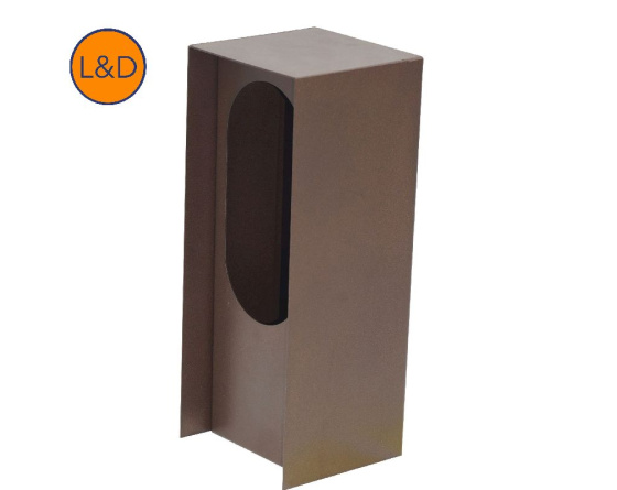 Potelet inox thermolaqué de couleur rouille givrée, permettant l'installation d'un appareillage électrique standard double.