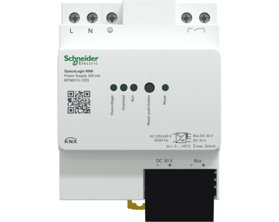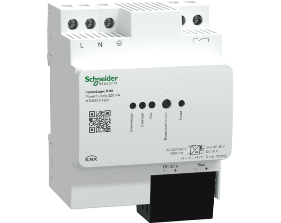 L’alimentation SpaceLogic KNX 320 mA génère la tension du système KNX