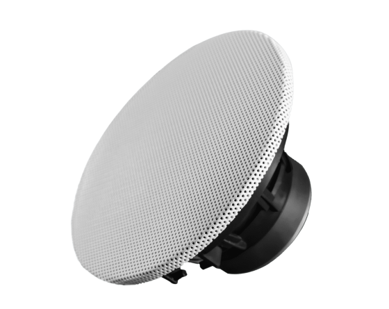 . Modèle compact de haut-parleur avec grille métallique blanche et ressorts