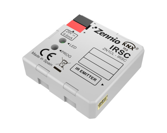 Module de contrôle de climatisation. L’IRSC est un contrôleur infrarouge de climatiseur. Il est capable d’intégrer plus de 300 modèles de climatiseur, de différentes marques, dans le réseau KNX. Émetteur IR inclus.