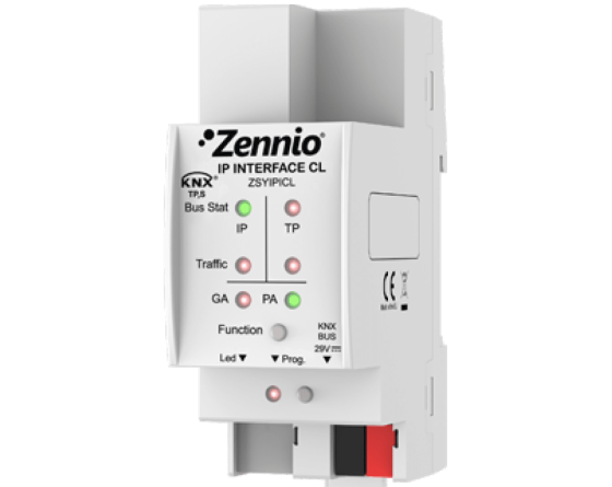 Le IP Interface CL permet la programmation ou la visualisation d'un dispositif connecté à son sous-réseau KNX TP (ligne ou zone) depuis un réseau IP (PC, BMS, ...) en utilisant le protocole KNXnet/IP Tunneling. Ce dispositif n’a pas besoin d'alimentation externe ni de PoE.