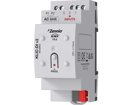 - Le KLIC-DI v2 est une interface de communication bidirectionnelle pour l’intégration d’appareils d’air conditionné des séries industrielle et commerciale de Daikin sous KNX. Il dispose de 2 entrées analogiques-numériques pour des sondes de température, des détecteurs de mouvement ou des contacts binaires libres de potentiel (boutons poussoirs, capteurs ou interrupteurs) et 10 fonctions logiques. 2 unités rail DIN. Accessoires : Sondes de température et détecteur de mouvement.