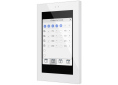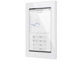 Écran tactile capacitif couleur de 5” rétro-éclairé avec une résolution de 480 x 854 pixels, qui permet le contrôle total de l’installation, grâce à ses 12 pages personnalisés, gardant une esthétique minimaliste. Il dispose de 2 entrées analogiques-numériques, une sonde de température interne et 2 thermostats indépendants. Il inclut un détecteur de proximité pour détecter l’activité proche pour un allumage rapide, ainsi que pour désactiver l’écran de veille, s’il a été configuré. Il dispose aussi d’un capteur de luminosité pour un réglage automatique de l’éclairage. Il inclut un port USB et Ethernet pour le téléchargement du firmware. Installation en boîtier d’encastrement standard européen et anglais.