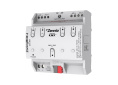 Actionneur pour montage sur rail DIN (4.5 unités) pour des systèmes de climatisation par air avec zonification. Il permet d’agir sur des grilles motorisées à 12/24 VDC sur jusqu’à 4 zones (jusqu’à 2 grilles par zone). Il inclut la gestion de températures de jusqu’à 12 zones en utilisant d’autres modules ZoningBOX 4/6 pour agir sur les zones additionnelles. Gestion de jusqu’à deux unités d’air conditionné par conduits : allumer/éteindre, consignes, mode, vitesse de ventilation, en fonction des zones activées. Contrôle manuel des sorties et indicateur visuel de mouvement des grilles au moyen de LEDs.