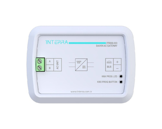 - ITR830-003 est une passerelle pour climatiseurs qui permet de contrôler tous les paramètres de fonctionnement des climatiseurs Daikin Industries via la ligne de bus KNX.
